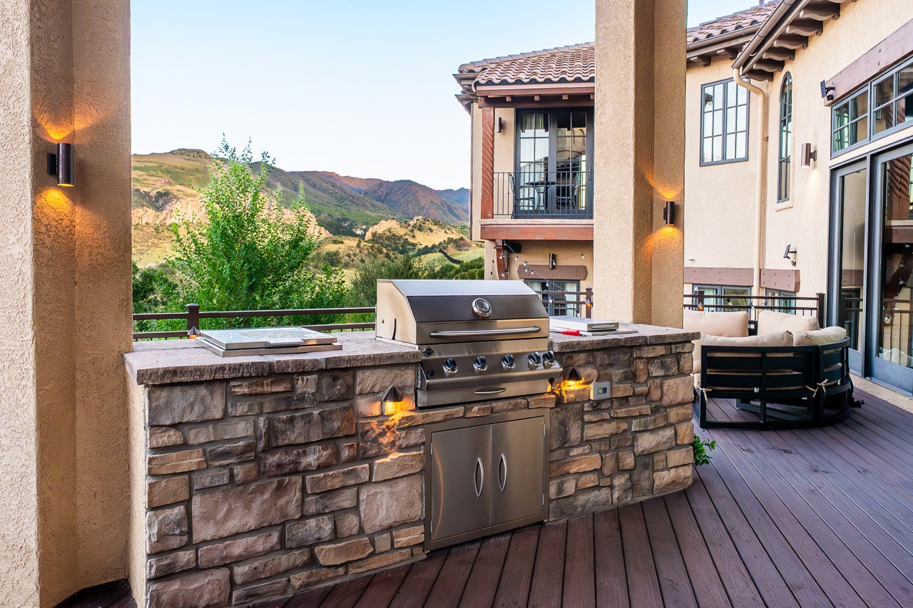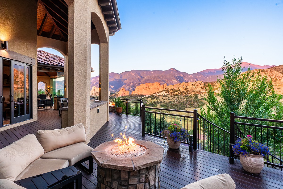 From Boring Deck to Year-Round DestinationOur client wanted more than a deck, they wanted a space that truly fit their lifestyle. In Colorado, where the weather can shift from sunshine to snow in a single day, creating a functional outdoor living area requires careful planning. We designed an outdoor space that included a covered, enclosed structure with premium materials and weather-resistant features, as well as numerous fire features, an outdoor kitchen, and a wellness space ensuring the family could entertain, dine, and relax no matter the season while enjoying the beautiful views of Garden of the Gods.